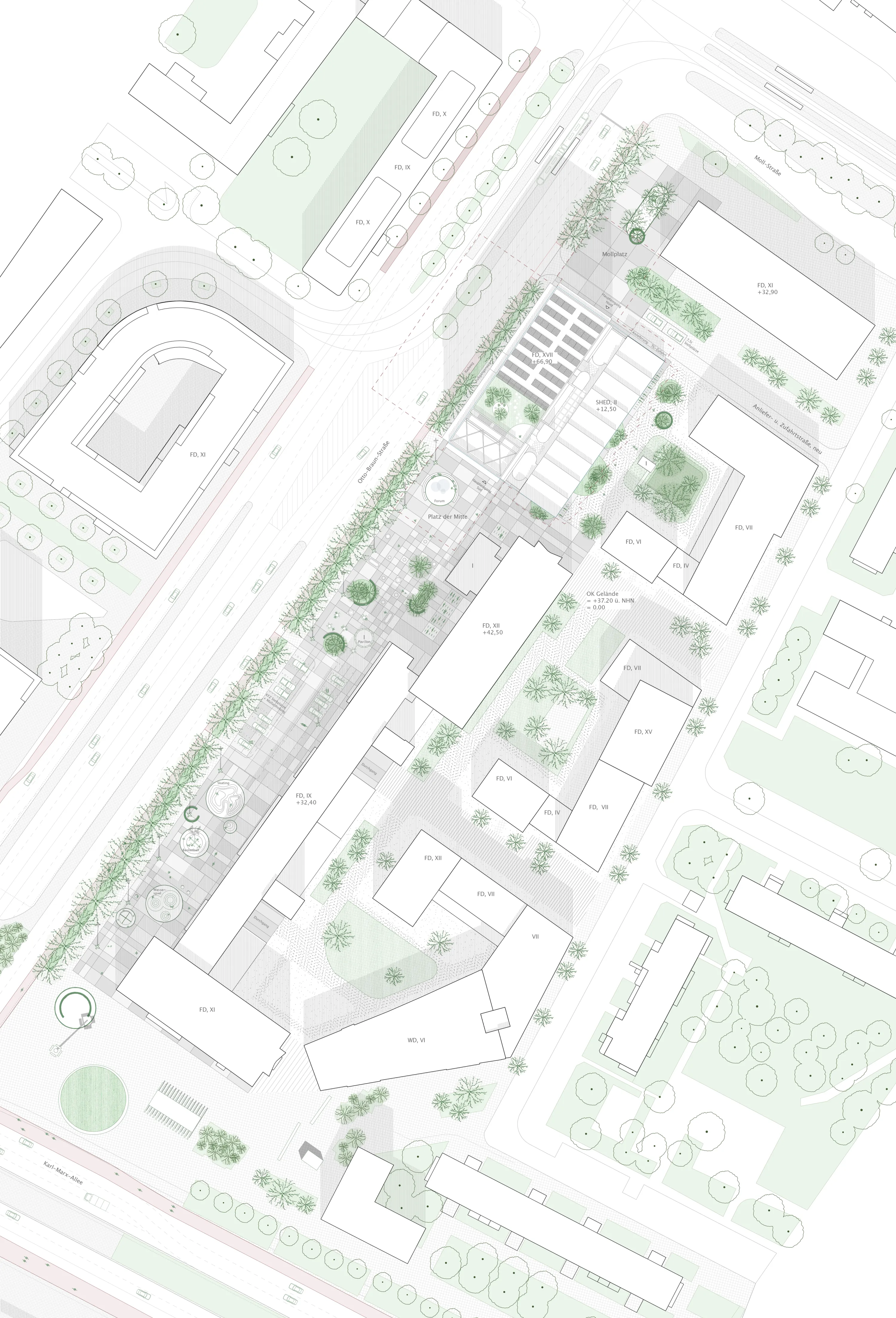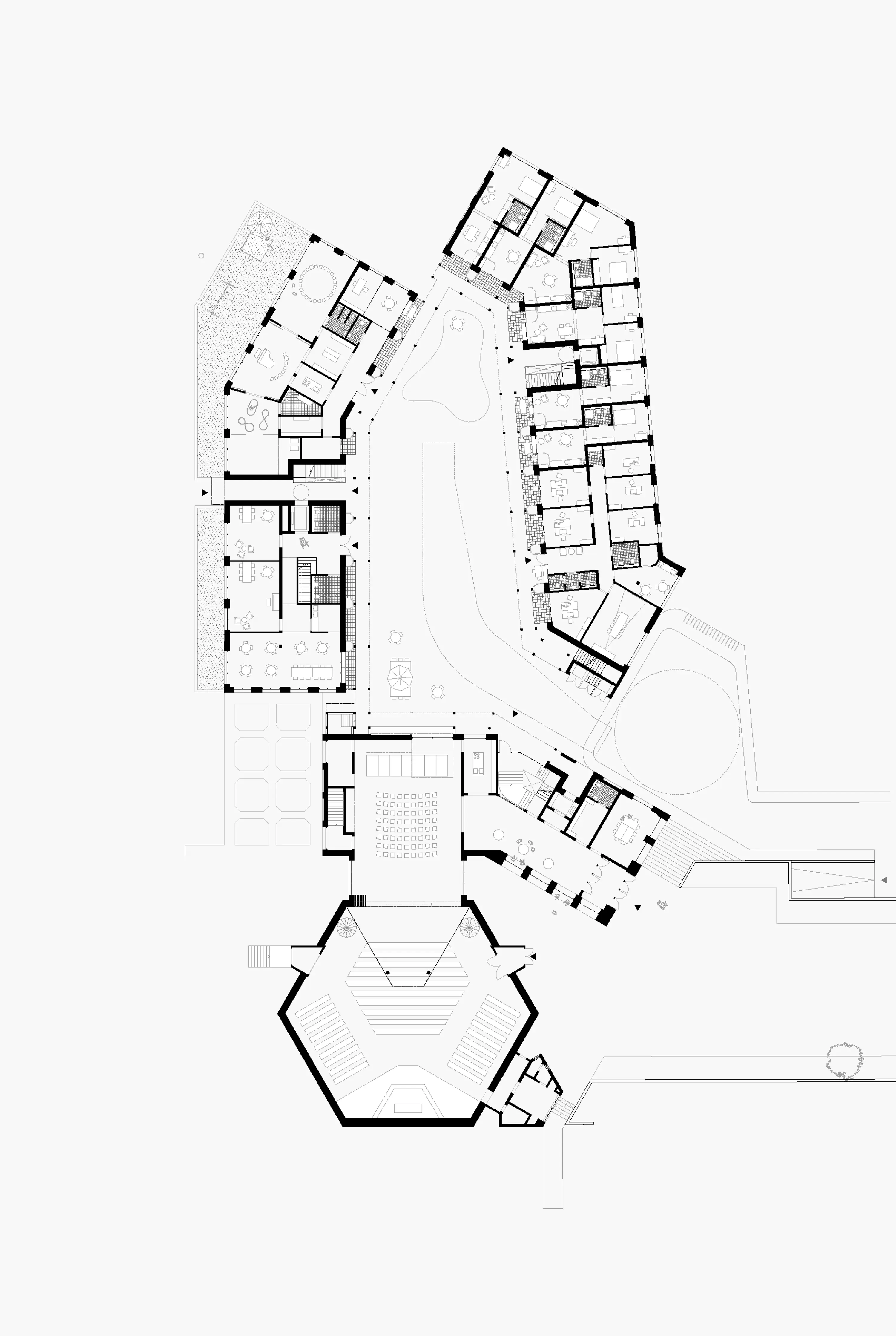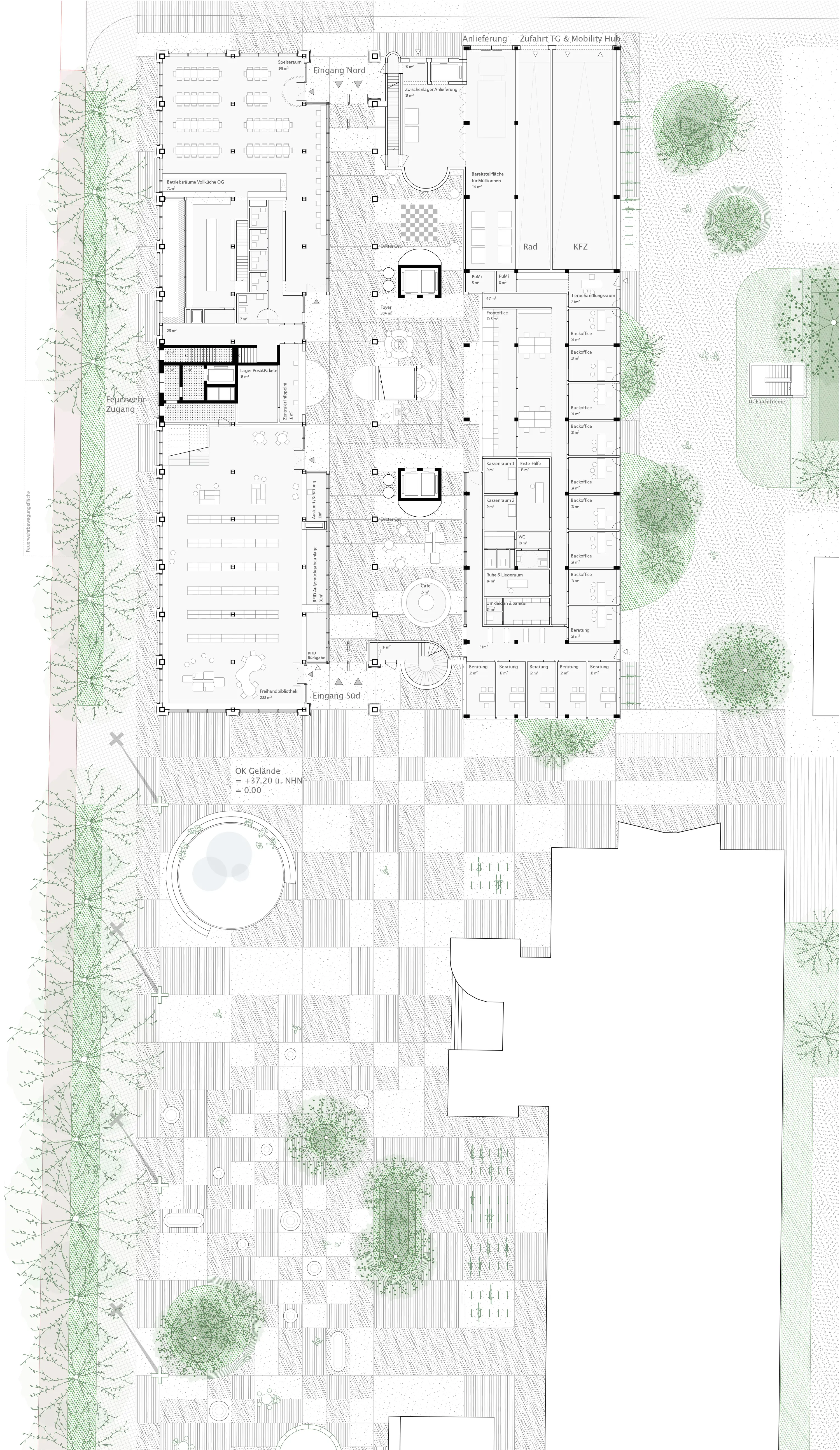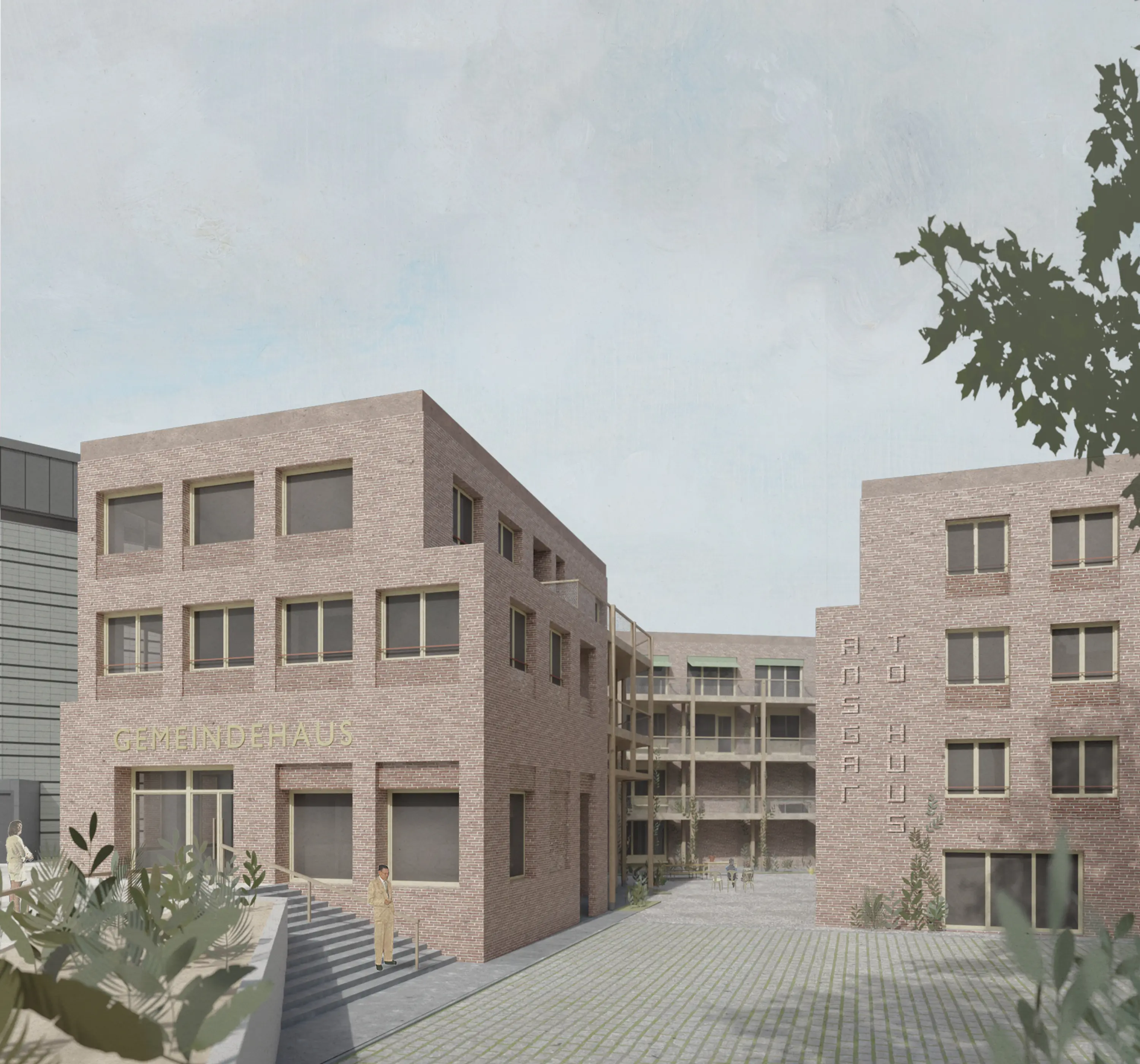 Wettbewerbsbeitrag für ein Neu- und Umbauprojekt auf dem Gelände der Ansgar-Kirche in Hamburg. Auf einer Gesamtfläche von ca. 3.000 m² entstehen unterschiedliche Wohneinheiten, Büroflächen sowie öffentliche Funktionen wie ein Gemeindesaal und eine Kindertagesstätte.