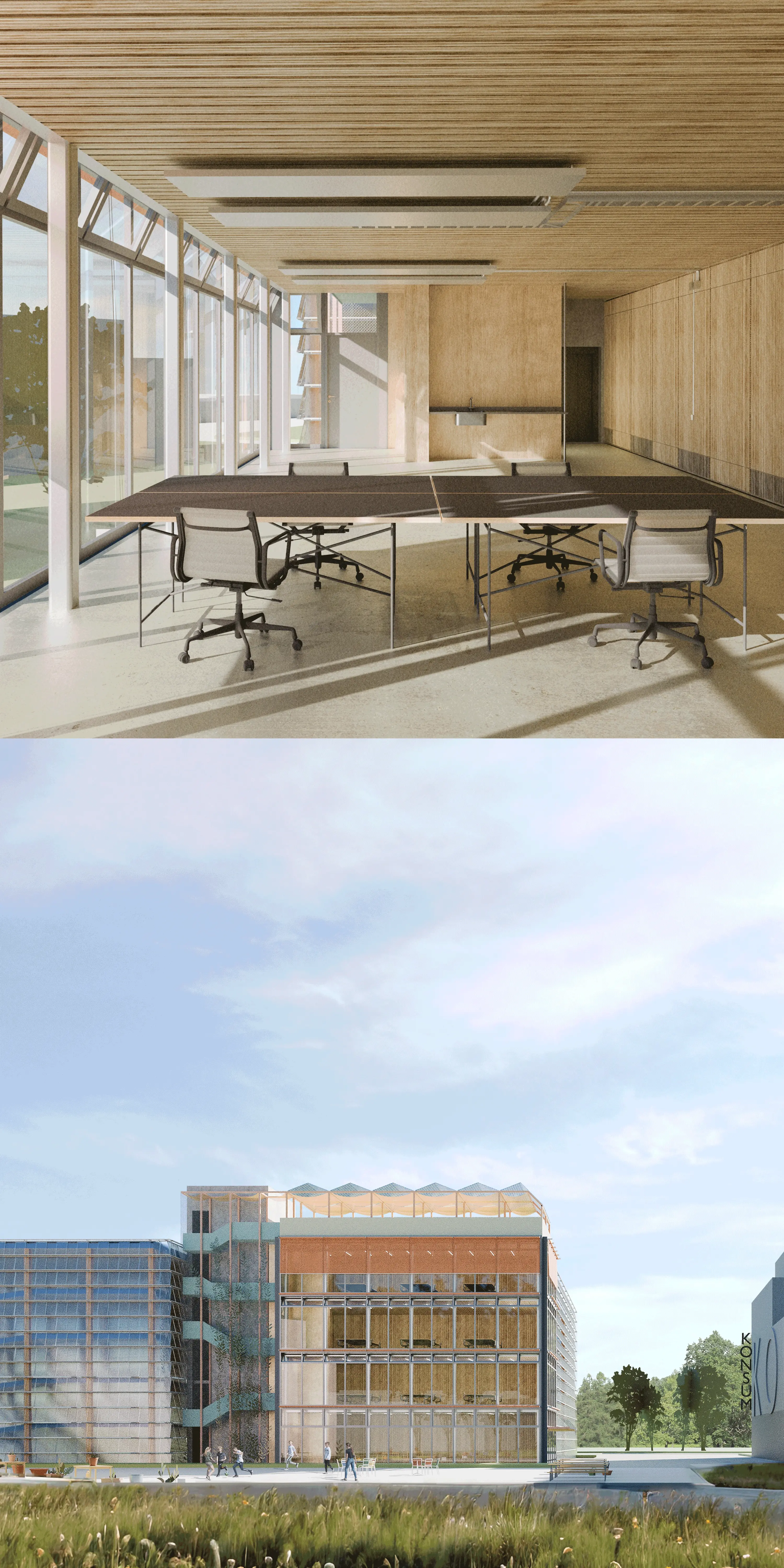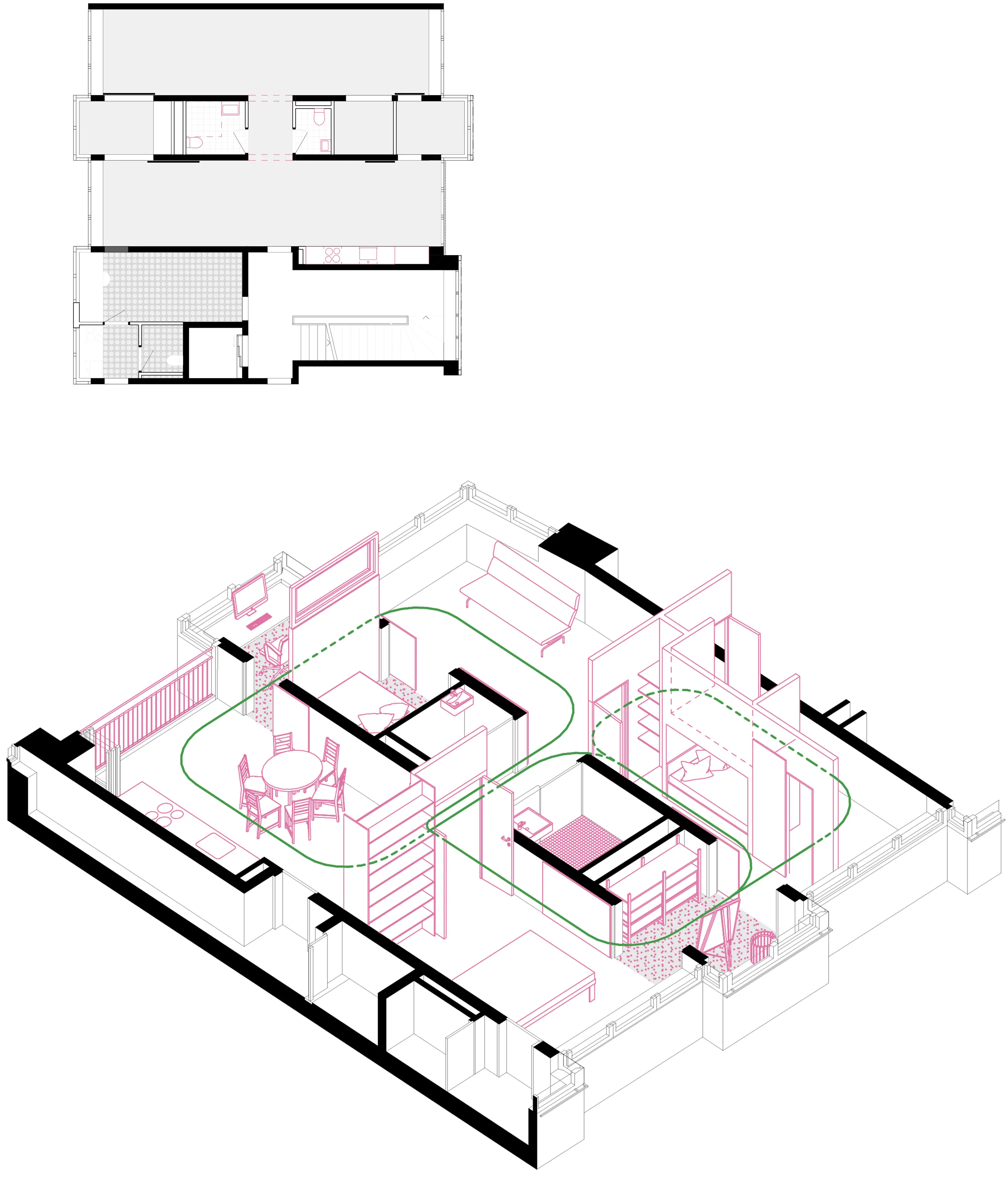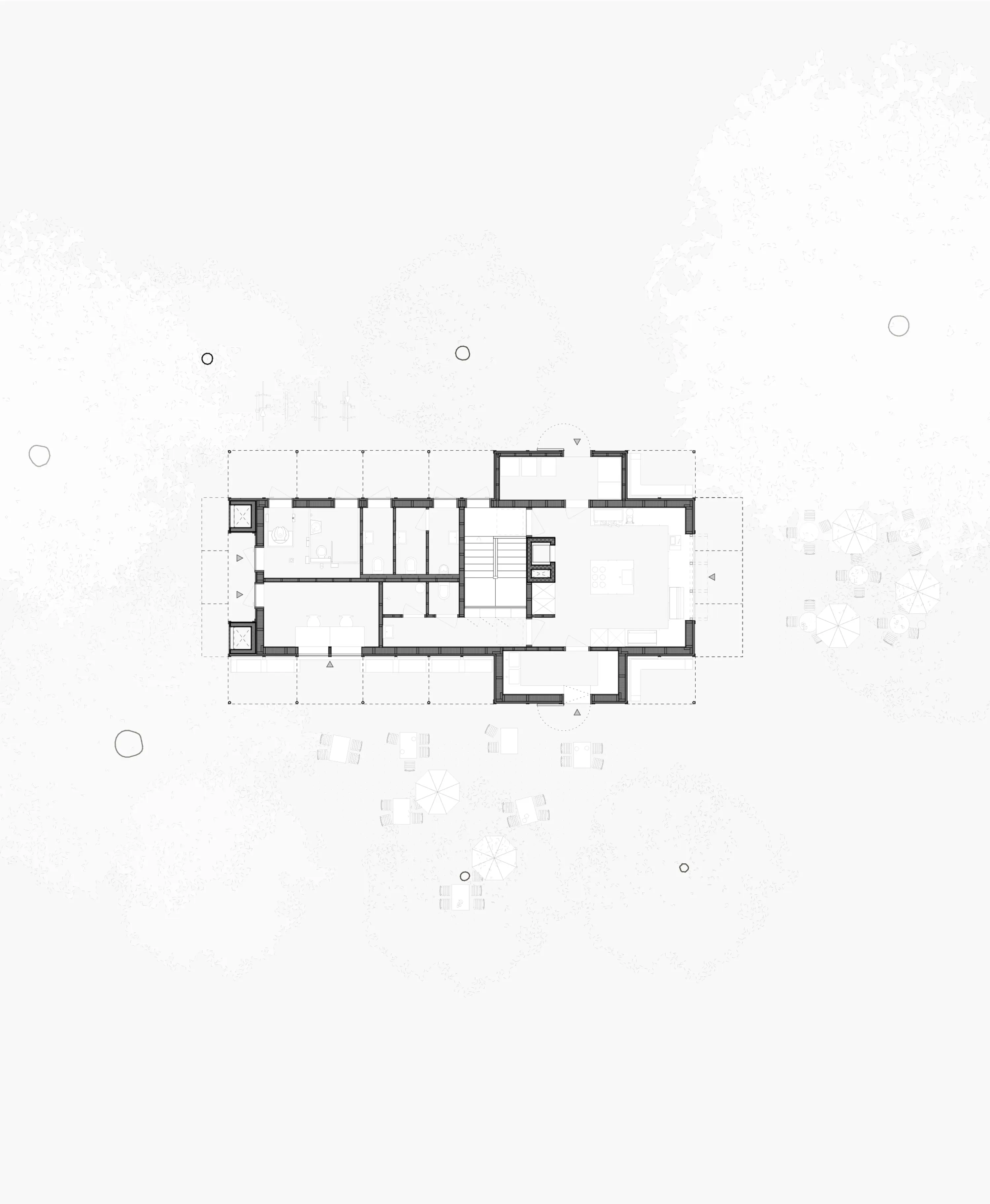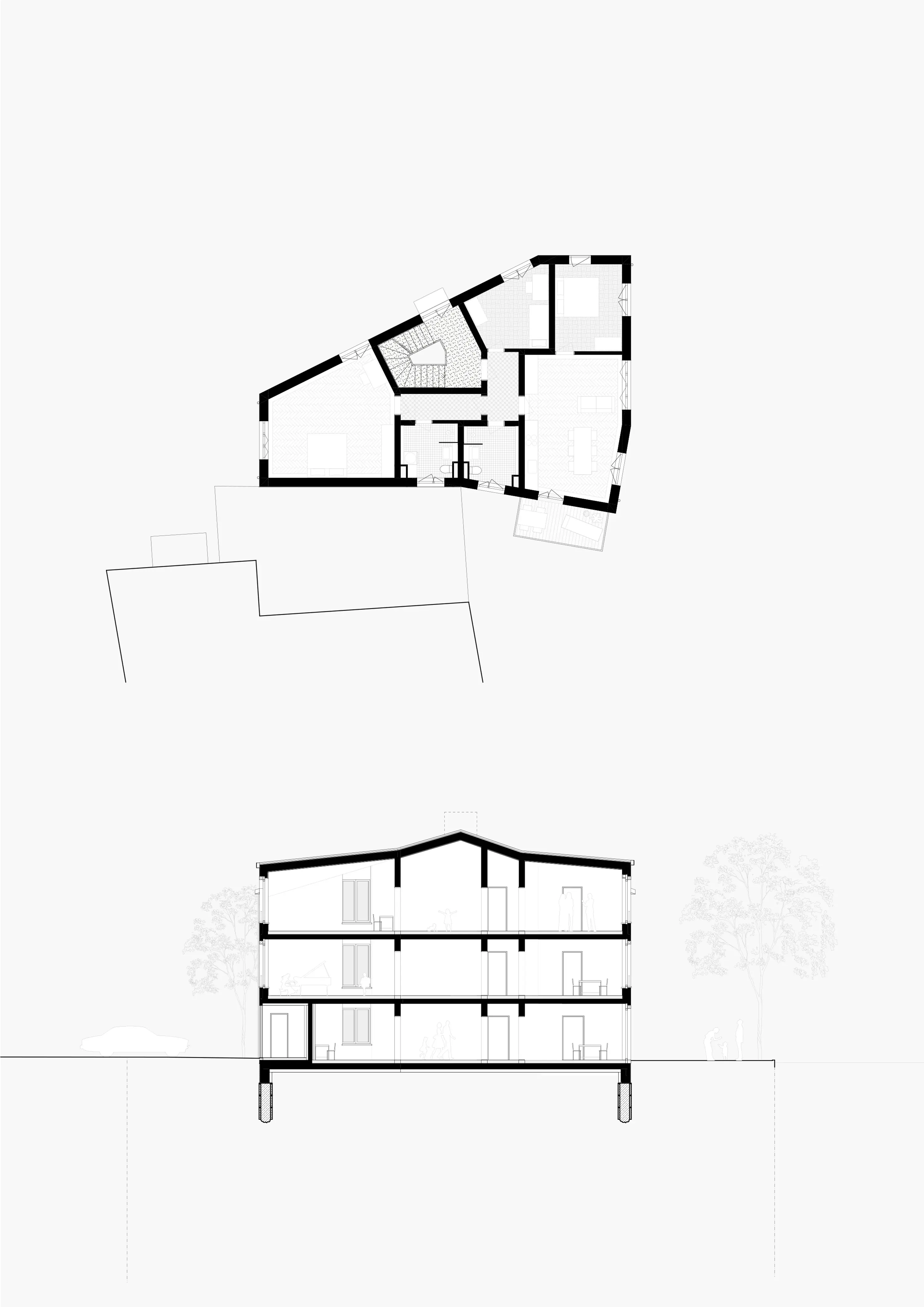 Das Gefüge aus drei Baukörpern wird durch eine kollektiv aneigenbare, leichte Laubengangschicht miteinander verbunden. Die Volumen der Gebäude treten in einen bewussten Dialog mit den für Hamburg typischen, schweren Wohnhäusern der Umgebung.